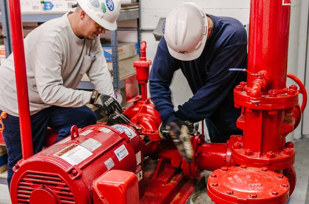 Fire pumps, usually powered by an electric, or diesel source, and drawing water from a public or private water supply, are used properly feed a sprinkler system when water pressure is not adequate.